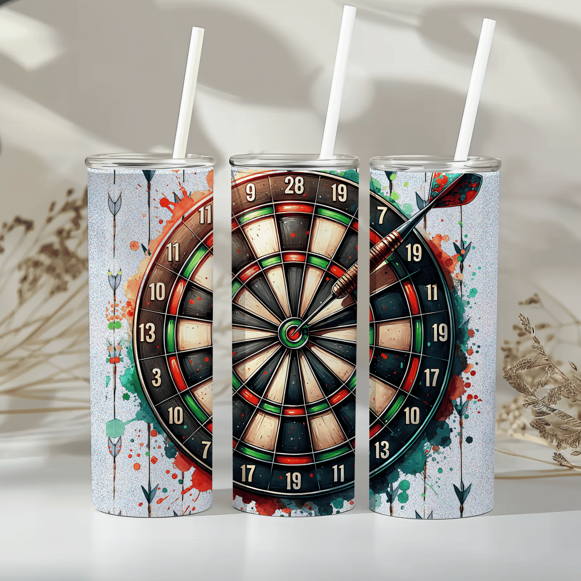 Dartboard Tumbler – 20oz Stainless Steel Cup with Bullseye Design – Gift for Darts Fans, Pub Night Pros & Competitive Legends
