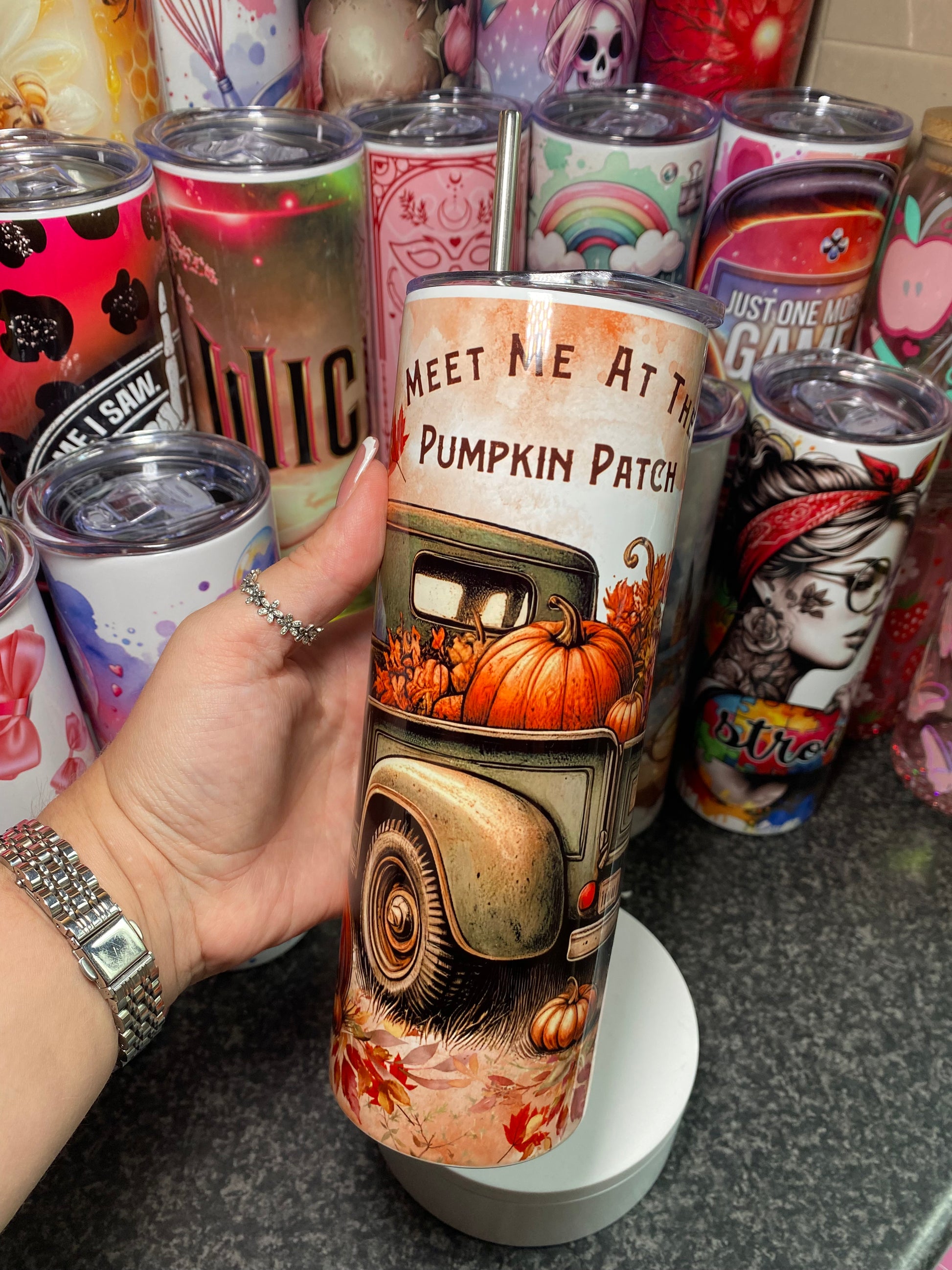 “Meet Me at the Pumpkin Patch” – Autumn Pickup Truck Tumbler – 20oz Fall Vibes Stainless Steel Cup