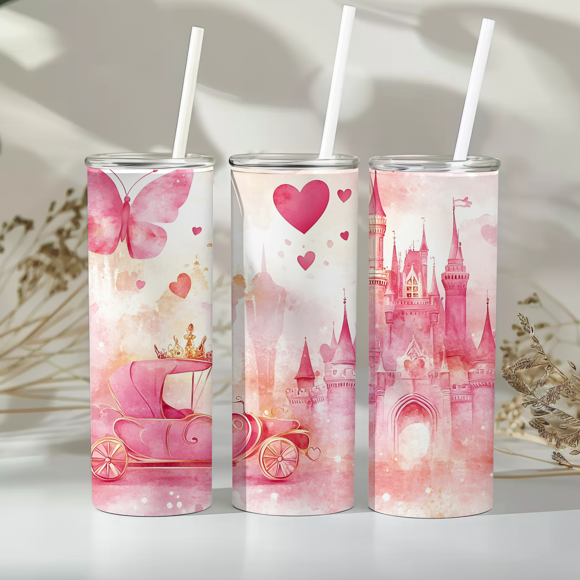 👑 Mini Me Princess Tumbler Gift Set – Matching Pink Castle & Carriage Design | 12oz Kids Sippy Cup + 20oz Adult Cup | Personalised Mommy & Me Set ✨