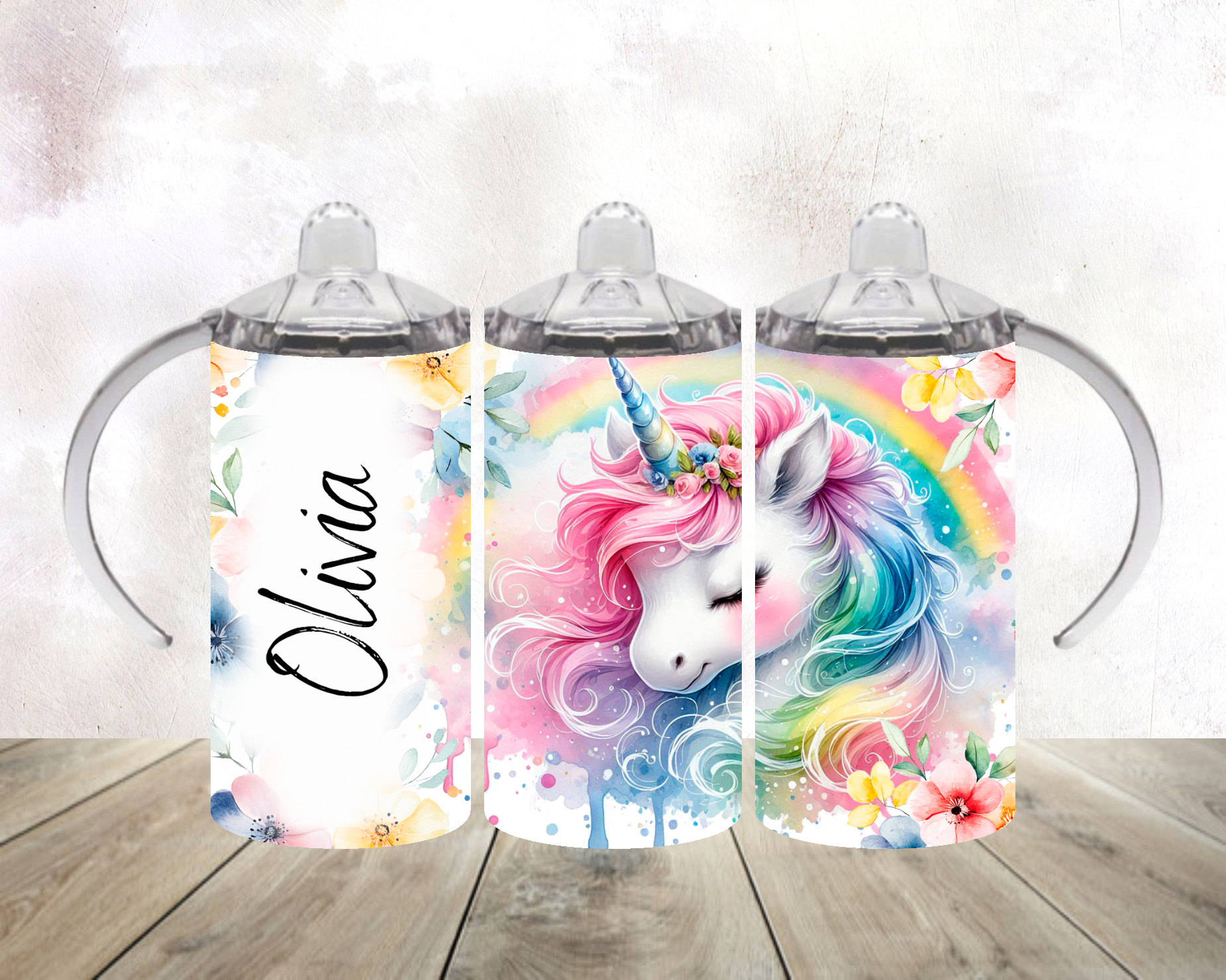 🦄 Personalised Unicorn Tumbler – 12oz Kids Cup with 2 Lids & Straw | Magical Unicorn Head Design | Sippy & Straw Lid | Custom Name Cup ✨