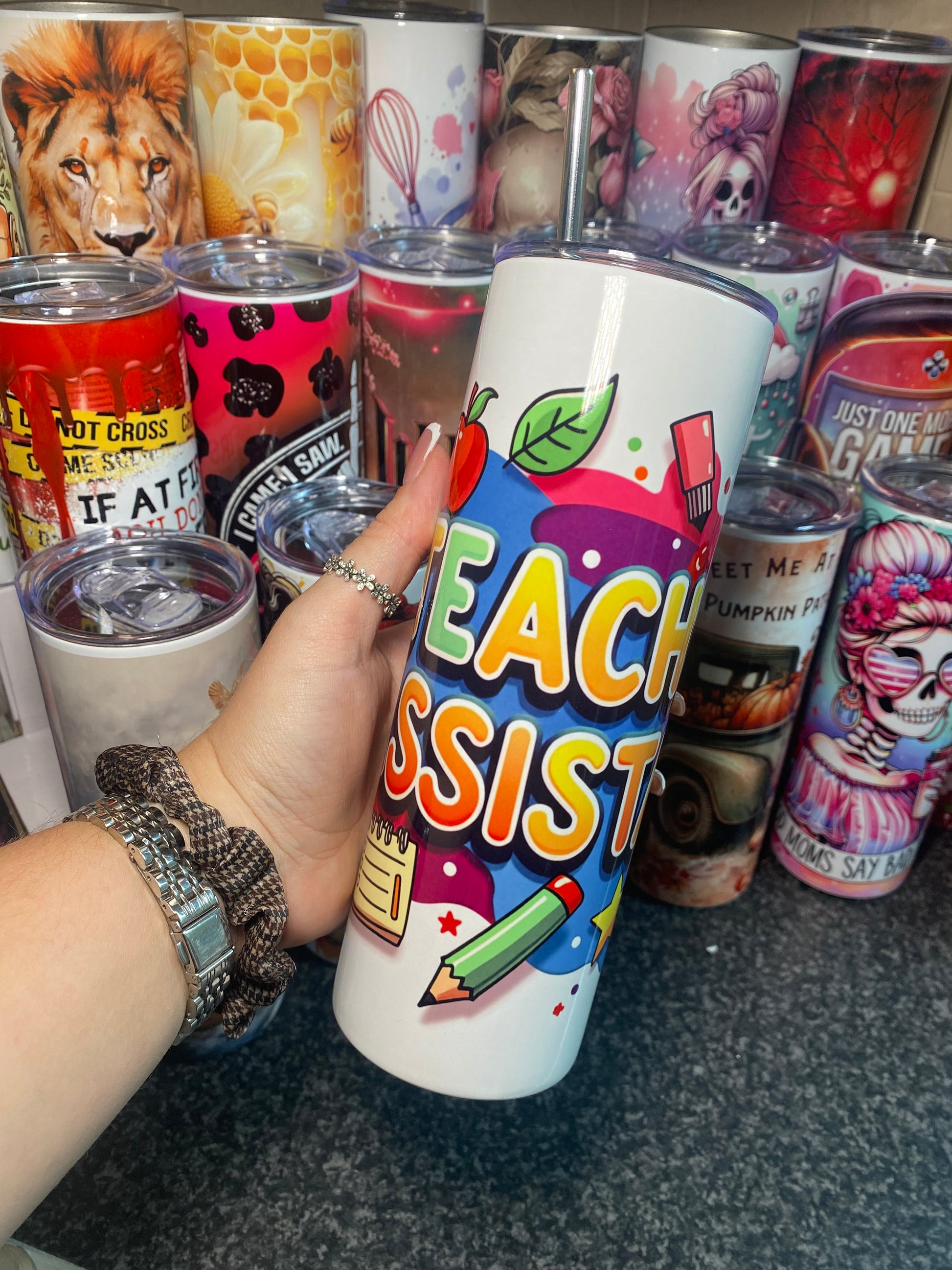 Teacher Assistant Tumbler – 20oz Colourful School Supply Cup – Classroom Appreciation Gift